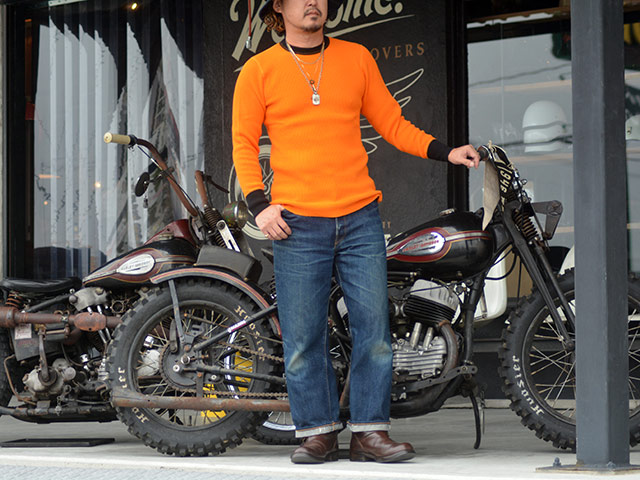 全2色【FREE WHEELERS/フリーホイーラーズ】2025FW「Crew Necked Thermal L/S Shirt/クルーネックッドサーマルロングスリーブシャツ」(2535006)