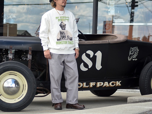 全2色【MONSTOR TIMES/モンストアタイムズ】2025AW「MONSTOR GREETING SWEAT SHIRTS”WHO ELSE WOULD WANT TO?”/モンストアグリーティングスウェットシャツ」(25AW-MT-005)