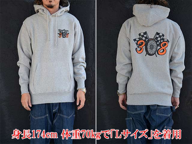 全4色【BLUE ROSE.308/ブルーローズ.308】「12oz Heavy Weight Sweat Pullover Parka"Cursive Logo"/12オンスヘビーウェイトスウェットプルオーバーパーカー"カーシブロゴ"」
